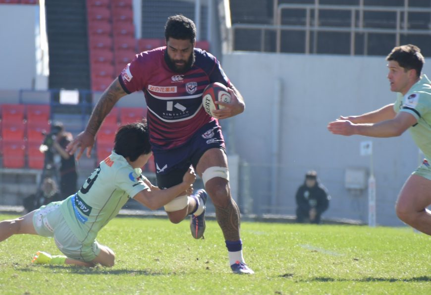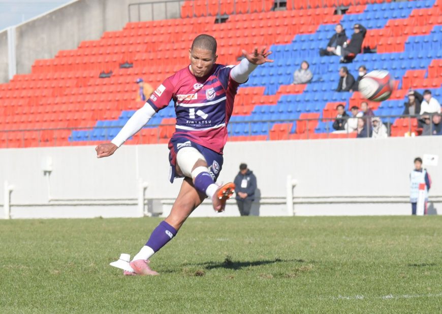 近鉄CTBピーター・ウマガ=ジェンセン(13)は先制トライを含む前半2トライを挙げ、近鉄の攻撃にリズムをつけた。ディフェンスでも再三の好タックルでピンチを救う大活躍。