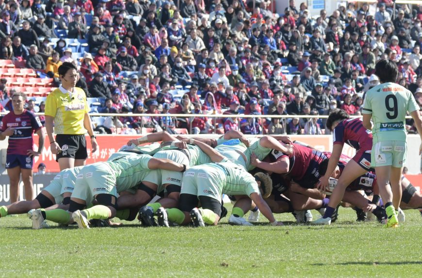 スクラムはほぼ互角だが、後半開始からは日野がやや優勢だった。後半にはイエローカードでLOのサナイラ・ワクァを欠きながら、スクラムでは何とか持ちこたえた。